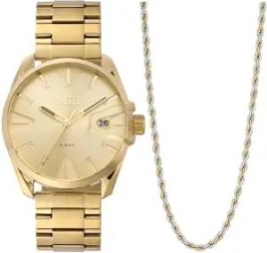Herrenuhr Ms9, Dreizeigeruhrwerk, 44MM Goldenes Edelstahlgehäuse mit Edelstahlarmband, DZ2163SET