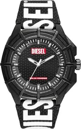 Herrenuhr Double Down S44, Dreizeigeruhrwerk, 44 mm Gehäuse aus schwarzem Polycarbonat mit Silikonarmband, DZ1437