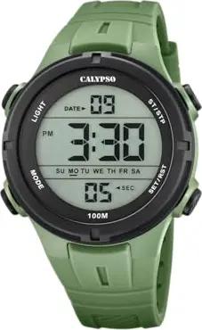 Digital Uhr Herrenuhr K5837/2 Quarz - Wasserdicht 10 ATM Datum und Kalender, Chronograph, Dualzeit, Licht, Alarm, 12 und 24 Stunden - Grünes Kautschukarmband - Flash Time