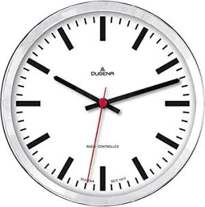 Wanduhr 4277414, Funkuhrwerk, weißes Zifferblatt, arabische Ziffern, Metallgehäuse, 33 cm, automatische Zeitumstellung