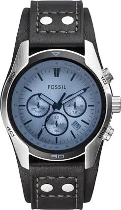 Coachman Uhr für Herren, Chronographenwerk mit Edelstahl- oder Lederarmband, Schwarz, 44MM