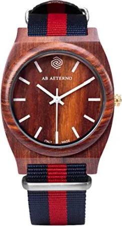 "Journey Red Blue Walnuss Holz Rot Swiss Quarz Blau Hypoallergen Unisex Uhr