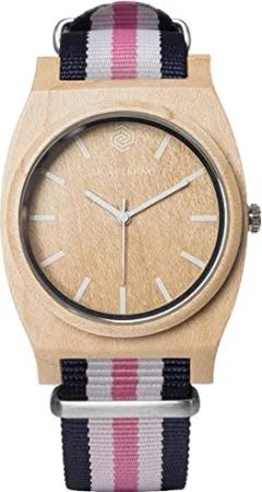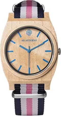 Route Blue White Pink Ahorn Holz Blau Swiss Quarz Weib Rosa Hypoallergen Unisex Uhr