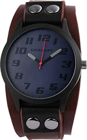 Herren-Uhr Kunstleder Armband Dornschließe Analog Quarz 2900085 (Dunkelbraun blau)