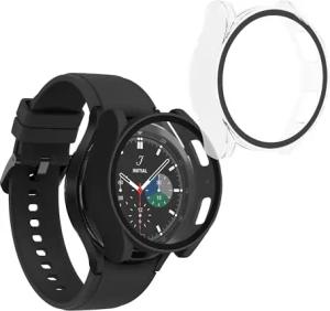 2X Cover kompatibel mit Samsung Galaxy Watch 6 44mm Hülle - Fullbody Fitnesstracker Case Set aus Glas - Schwarz Transparent