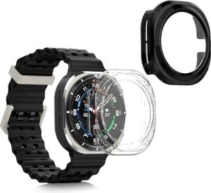2X Cover kompatibel mit Samsung Galaxy Watch Ultra 47mm Hülle - Fullbody Fitnesstracker Case Set aus Glas - Transparent Schwarz