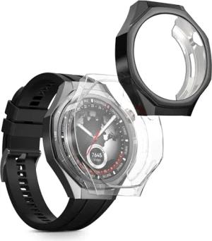2X Schutzhülle kompatibel mit Huawei Watch 5 46mm Hülle - Fullbody Cover Set aus Silikon - Transparent Schwarz