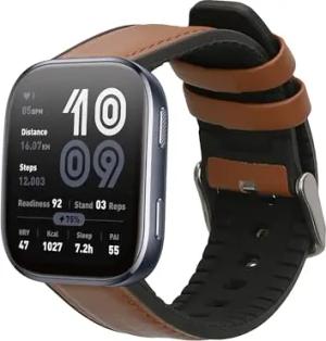 Ersatzarmband kompatibel mit 22mm Amazfit Bip 6 / Bip 5 Unity/Bip 5 / GTS 3 / Balance 2 / Helio Strap Armband - Fitnesstracker Sportarmband aus Leder mit Uhrenverschluss - Braun Schwarz