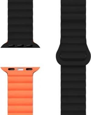 Core Magnet Armband kompatibel mit Apple Watch Series Ultra/SE/10/9/8/7/6/5/4/3/2/1-42/44/45/46/49mm, Atmungsaktives Silikon Loop, Sportarmband mit Rillendesign, Farbe:Nachtschwarz Orange