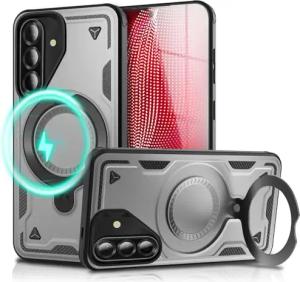 Magnetische Panzerhülle für Samsung Galaxy A56 - Ring-Halterung 360° & MagSafe kompatibel - STORMGUARD (Outdoor Case) - Marke aus Berlin, Farbe:Sturmsilber