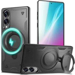 Magnetische Panzerhülle für Samsung Galaxy S25 Edge - Ring-Halterung 360° & MagSafe kompatibel - STORMGUARD (Outdoor Case) - Marke aus Berlin, Farbe:Vulkanschwarz