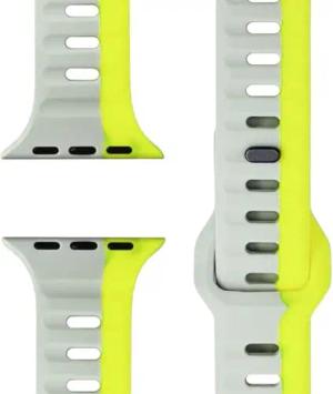 Motion Silikon Armband kompatibel mit Apple Watch Armband iWatch Series Ultra/SE 10 9 8 7 6 5 4 3 2 1, 42/44/45/46/49mm, Ersatzarmband Sportarmband Steck-Pin Verschluss, Farbe:Leuchtgelb Grau