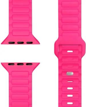 Pulse Silikon Armband kompatibel mit Apple Watch Armband iWatch Series SE/10/9/8/7/6/5/4/3/2/1, 38/40/41/42mm, 3D Textur Sportarmband mit Steck-Pin Verschluss, Farbe:Neon Pink