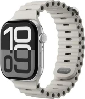 Wave Band 2 – Sportliches Silikonarmband aus recyceltem Material, wasserfest, sichere Passform, kompatibel mit Apple Watch - Größe 44 | 45 | 46 | 49mm - cream