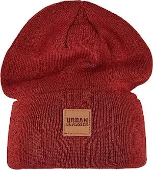 Unisex Synthetic Leatherpatch Long Beanie-Mütze, Burgundy, one Size