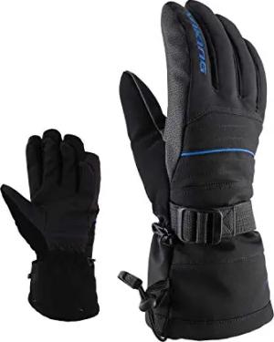 Ski and Snowboard Gloves - Cuff Puller - Wrist Puller - Anti-Slip Palm - Durable Fabric - Bormio, Black/Blue, 7