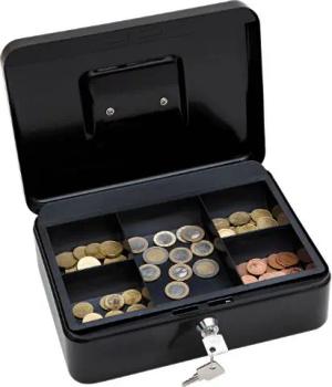 145321X Geldkassette (aus pulverbeschichtetem Stahl, versenkbarer Griff, 5-Fächer-Münzeinsatz, Sicherheits-Zylinderschloss, 25 x 18 x 9 cm) schwarz