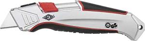 78825 Safety Cutter Aluminium, automatischer Klingenrückzug, Aluminiumgehäuse, Gummi Griffzone, integriertes Magazin, TÜV/GS-GEPRÜFT, inkl. 1 Ersatzklinge, Silber/Schwarz/Rot