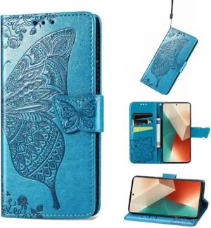 Für Xiaomi Redmi Note 13 Pro Plus Kunstleder Wallet Handy Tasche Schmetterling Design Schutz Hülle Case Cover Blau