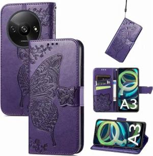 Für Xiaomi Redmi A3 Kunstleder Wallet Handy Tasche Schmetterling Design Lila