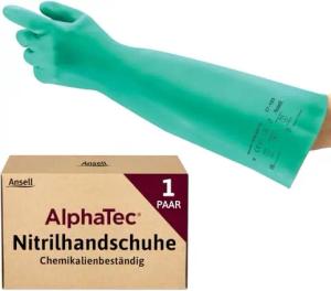 AlphaTec 37-185 Nitril-Arbeitshandschuhe, Industrie Chemikalien und Lebensmitteln, Chemikalien-Schutz Latexfrei, Chemie-Handschuh Säurefest, Damen Herren, Grün, Größe S (1 Paar)