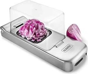 3094 - Edelstahl-Multifunktionsschneider Mit Auffangbox - Gemüse- Zwiebel- und Pommesschneider - 3 Austauschbare Klingen - 3x3 mm 6x6 mm & 12x12 mm - BPA-frei