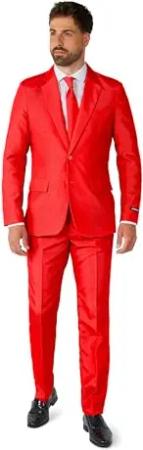 Modisch Party Einfarbige Anzüge für Herren - Mit Jackett, Hose und Krawatte, Rot (Red Devil), 62 EU