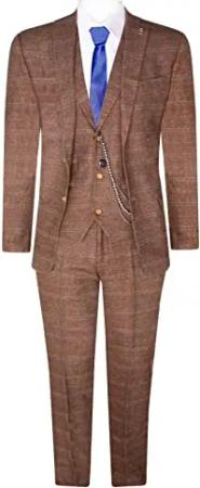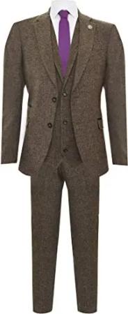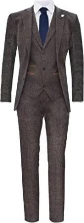 Herren Klassischer 3 Teilig Tweedanzug Mit Braunem Fischgrätenmuster Und Blinders 60EU