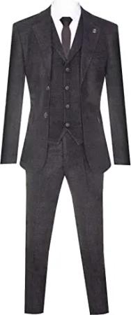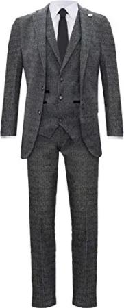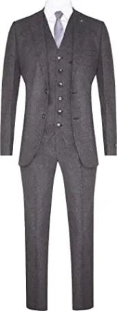 Herren Klassischer 3 Teilig Tweedanzug Mit Grau Fischgrätenmuster Und Blinders 60EU