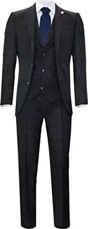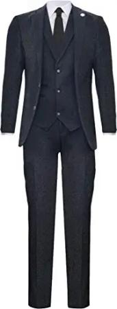 Herren Klassischer 3 Teilig Tweedanzug Mit Schwarz Fischgrätenmuster Und Blinders 46EU