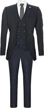 Herren Wolle Navy Blau 3 Stück Anzug Zweireiher Weste Tweed Blinders 1920er Jahre 50/34W
