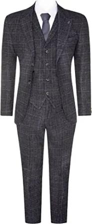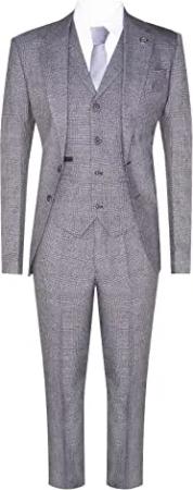 3-teiliger Anzug für Herren, Grauer, Karierter Tweed-Anzug aus den 1920er Jahren von Gatsby Blinders 48