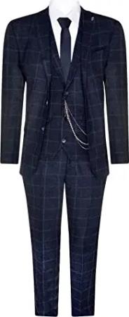 3 Teiliger Herren Anzug aus Wolle, Marineblau, Tweed, Kariert, Peaky 1920 Gatsby Formall