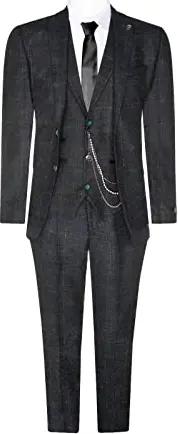 Grauer 3-Teiliger Herren-Anzug aus Wollmischung mit 2 Knöpfen Peaky Schlank Fit Jacke mit Weste