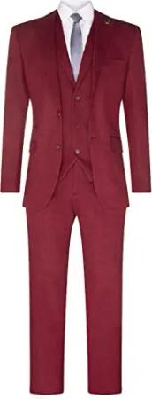 Modisch Party Einfarbige Anzüge für Herren - Mit Jackett, Hose und Krawatte, Rot (Blazing Burgundy), 48 EU