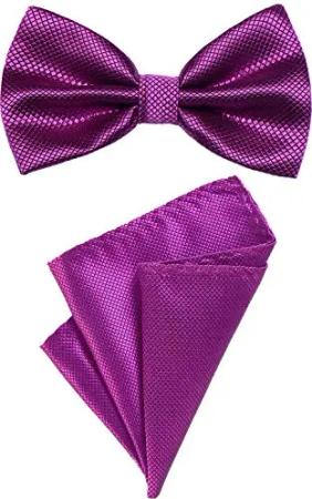 Herren Fliege 12 x 6 cm gebunden längenverstellbar und Einstecktuch 23 x 23 cm farblich passend aus Baumwolle fliederfarben