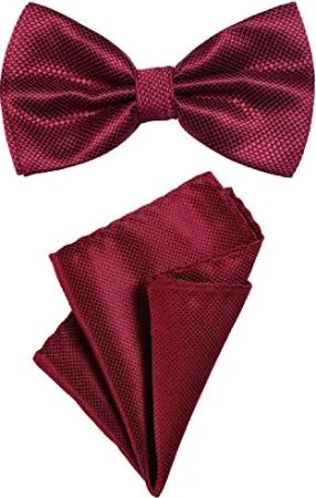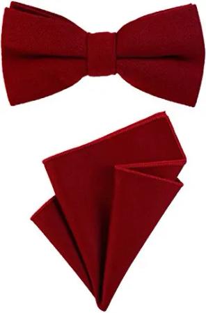 Herren Fliege 12 x 6 cm gebunden längenverstellbar und Einstecktuch 23 x 23 cm farblich passend aus Baumwolle dunkelrot