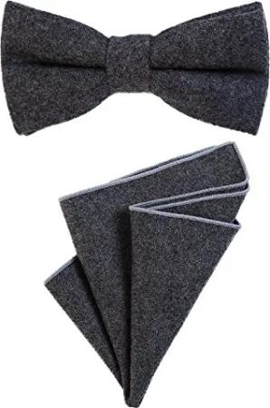 Herren Fliege 12 x 6 cm gebunden längenverstellbar und Einstecktuch 23 x 23 cm farblich passend aus Baumwolle dunkelgrau