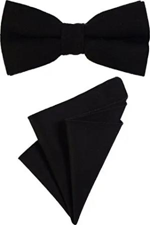 Herren Fliege 12 x 6 cm gebunden längenverstellbar und Einstecktuch 23 x 23 cm farblich passend aus Baumwolle schwarz
