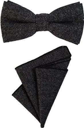 Herren Fliege 12 x 6 cm gebunden längenverstellbar und Einstecktuch 23 x 23 cm farblich passend aus Baumwolle schwarz dunkelgrau