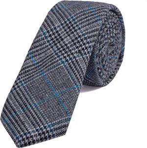 Herren Krawatte 6 cm Baumwolle grau-blau kariert