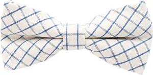 karierte Herren Fliege 12 x 6 cm aus Baumwolle gebunden und größenverstellbar weiß-blau kariert