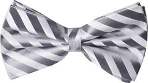 Gestreifte Fliege Herren vorgebunden & verstellbar, Querbinder für feierliche Anlässe, klassische Schleife Silber Weiß