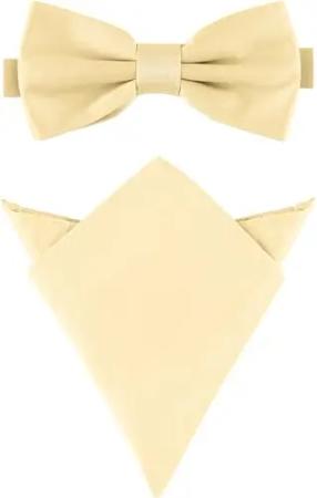 Herren Schmale Fliege & Einstecktuch Set M/P (12cm x 6cm, 22cm x 22cm, Ecru)