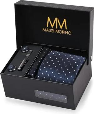 Krawatte Dunkelblau Gepunktet mit Einstecktuch Set Herren inkl. Manschettenknöpfe, Krawattennadel und Geschenkbox | Männer Krawattenset zur Hochzeit