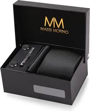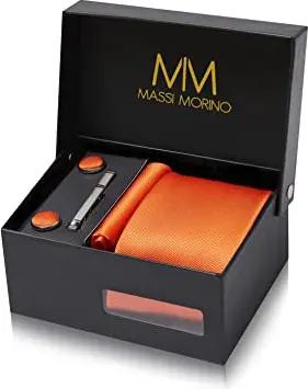 Krawatte Schwarz mit Einstecktuch Set Herren inkl. Manschettenknöpfe, Krawattennadel und Geschenkbox | Männer Krawattenset zur Hochzeit