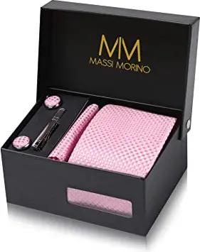 Krawatte Weinrot mit Einstecktuch Set Herren inkl. Manschettenknöpfe, Krawattennadel und Geschenkbox | Männer Krawattenset zur Hochzeit