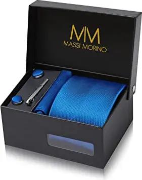 Krawatte Royalblau mit Einstecktuch Set Herren inkl. Manschettenknöpfe, Krawattennadel und Geschenkbox | Männer Krawattenset zur Hochzeit
