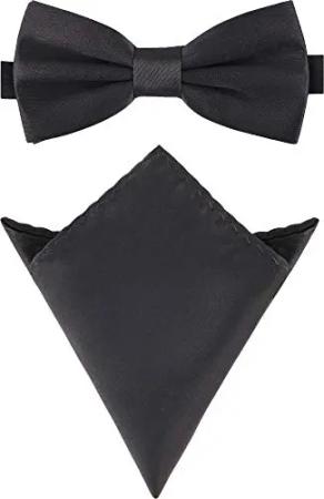 Herren Schmale Fliege & Einstecktuch Set M/P (12cm x 6cm, 22cm x 22cm, Schwarz)