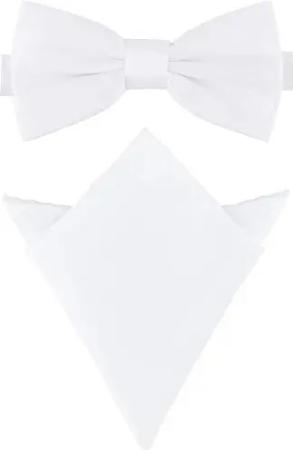 Herren Schmale Fliege & Einstecktuch Set M/P (12cm x 6cm, 22cm x 22cm, Weiß)